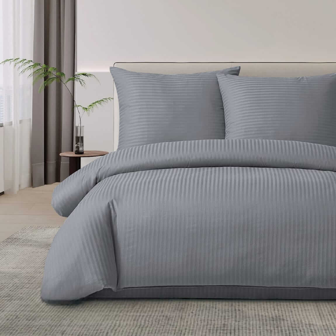 Pościel jednobarwna z adamaszku grafitowa w pasy 1 cm zawiera: