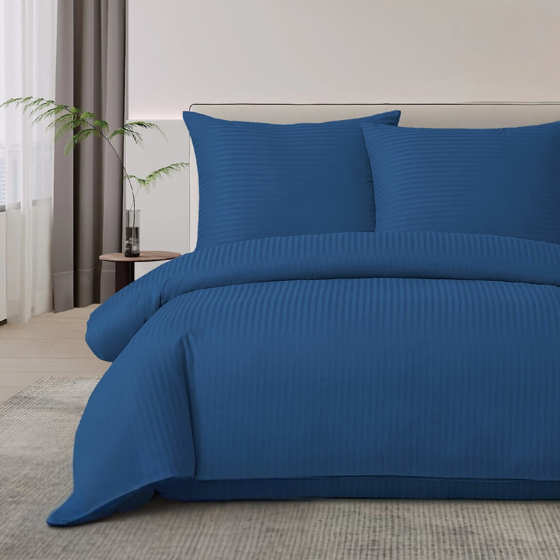 Pościel jednobarwna z adamaszku niebieska w pasy 1 cm zawiera: